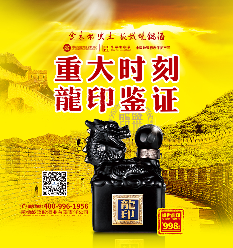 承德板城酒業銷售有限公司(簡稱:板城酒業)是一家有著幾百年歷史的慶元亨燒酒作坊。從康熙五十六年,皇莊燒鍋作坊遷至板城古鎮至今,已經承載了308年的悠久歷史。乾隆三十八年,乾隆皇帝與紀曉嵐一句“金木水火土,板城燒鍋酒”的千古妙對,使承德慶元亨酒坊的板城燒鍋酒名揚天下,這也成為企業記憶傳承中,不能割舍的文化淵源。